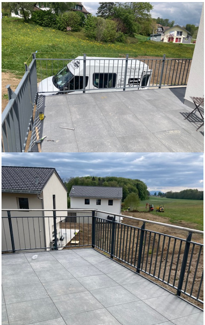 Pose de dalle de terrasse 20mm sur plots réglable.