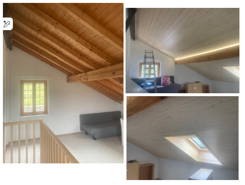 Isolation intérieur d'un séjour, pose de lambris Polaris, installation d'une bande led, embrasure velux.